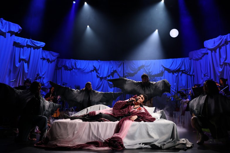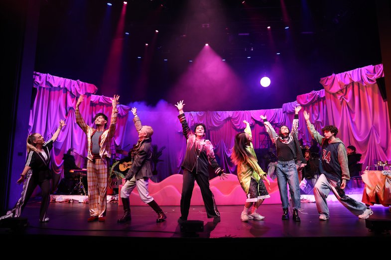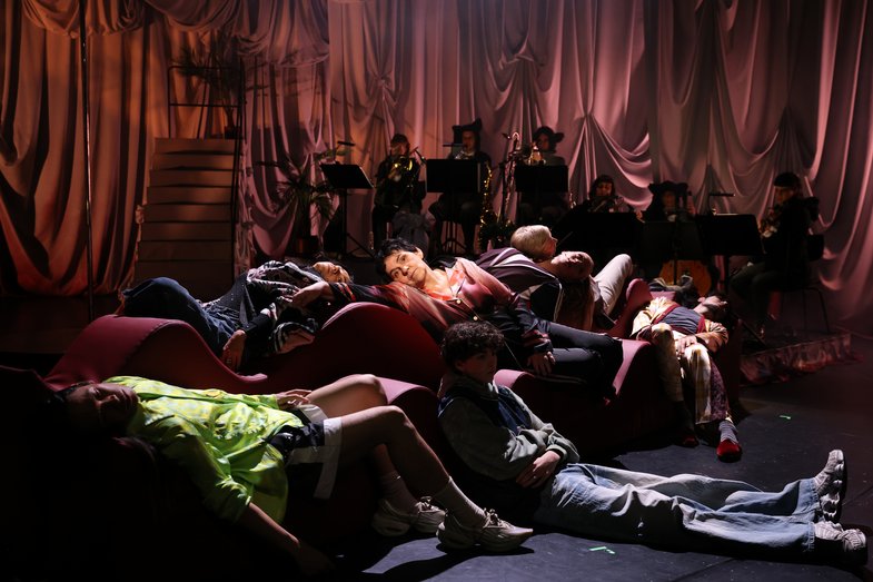 Text, Komposition, Regie: Christiane Rösinger / Co-Regie: Greta Călinescu / Künstlerische Mitarbeit Regie: Stella Nikisch / Musikalische Leitung, Arrangements: Albrecht Schrader / Performance: Sila Davulcu, Claudia Fierke, Doreen Kutzke, Minh Duc Pham, Christiane Rösinger, Gideon Rösinger, Andreas Schwarz / Das Orchester der Müdigkeit: Marleen Dahms, Sebastian Gieck, Jannis Gottschalk, Kristina Koropecki, Izzy Ment, Jean-Louise Parker, Albrecht Schrader, Liv Solveig, Lutz Streun, Marie Tjong-Ayong / Bühne: Barbara Lenartz / Kostüm: Svenja Gassen / Maske: Juli Schulz / Video und Live-Kamera: Kathrin Krottenthaler / Lichtdesign: Hendrik Borowski / Dramaturgie: Aenne Quiñones / Choreografie: Brigitte Cuvelier / Pole-Dance-Training: Yvonne Wadewitz / Künstlerische Mitarbeit: Gabi Bartels (Bühne), Ellias Hampe (Dramaturgie/Produktion), Aleix Ilusa (Kostüm), Rosina Zeus (Bühne) / Übersetzung: Lyz Pfister (Panthea) / Einrichtung und Operating Übertitel: Katrin Meyberg (Panthea) / Ton und Sounddesign: Thorsten Hoppe, Torsten Schwarzbach (HAU) / Technische Leitung: Amina Nouns (HAU) / Produktionsleitung: Chiara Galesi (HAU)