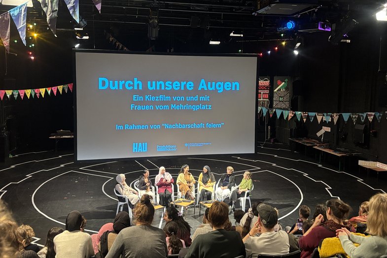Konzept und Idee Film: Therese Koppe, Wafaa Khattab / Künstlerische Leitung: Therese Koppe / Von und mit: Asmaa Abu Liel, Ranja Kayed, Maysa El-Fares, Ruba Abdelfatah, Yamama El-Khaled, Najwa Koussa, Sabah El-Ahmad, Nadia Abdul Al, Ahlam Abdul Al / Künstlerische Mitarbeit und Dokumentation: Luis Miguel Benavides und Nina Szkolka (tesserae) / Prozessbegleitung und Vernetzung: Wafaa Khattab (Quartiersmanagement Mehringplatz), Lea Hartung (Zentral- und Landesbibliothek Berlin) und Stella Konstantinou (HAU to connect) / Filmmusik: Nabil Arbaain