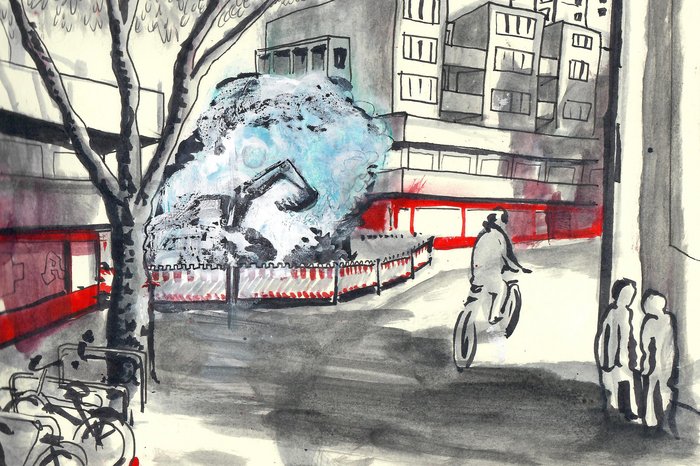 As part of the programme “‘Я выхожу!’ (I’m going out) – Berlin meets Minsk” on the current events in Belarus, Fabifa created this tape art picture for HAU Hebbel am Ufer. The artist from Minsk lives in Berlin and presents her tape art performances at festivals and exhibitions throughout Europe. In Berlin, her works can be seen repeatedly on walls all over the city.