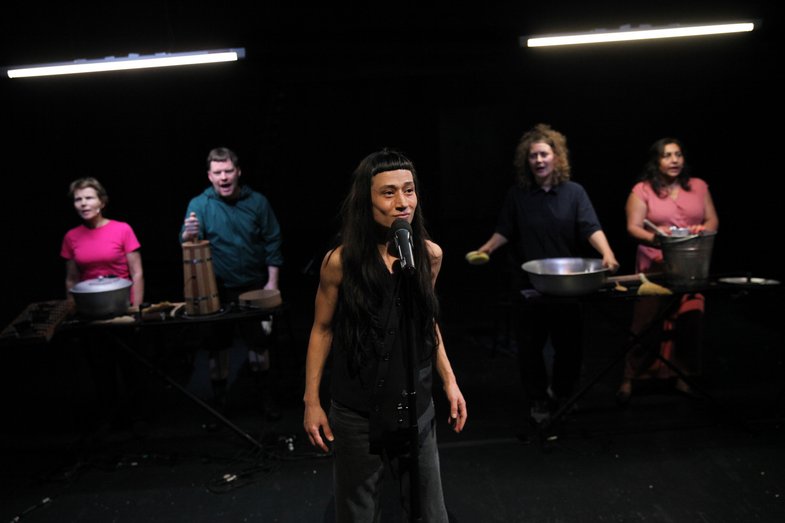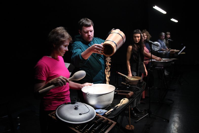 A performance by: Nicoleta Esinencu, Antosea Darca and Elena Anmeghichean, Cătălina Bucos, Doina-Romanța Dochitan, Nora Dorogan, Ciprian Marinescu, Kira Semionov, Elena Sîrbu, Doriana Talmazan, Artiom Zavadovsky / Performers: Elena Anmeghichean, Cătălina Bucos, Doina-Romanța Dochitan, Nicoleta Esinencu, Elena Sîrbu, Doriana Talmazan, Artiom Zavadovsky / Lighting design: Ulrich Kellermann / Sound design: Janis Klinkhammer / Dramaturgical advice: Aenne Quiñones / Production managment: Anna Krauß / Technical direction: Annette Becker