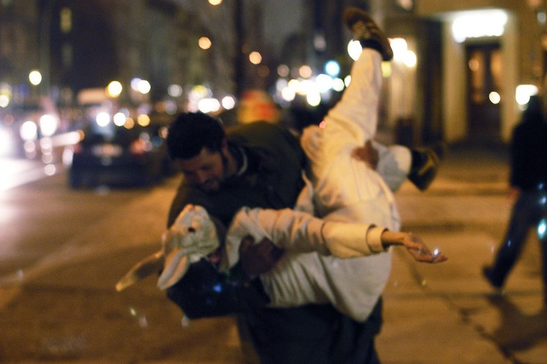 “Super Night Shot” is a unique multi-screen movie which is screened only once. Filming begins exactly one hour before the audience arrive at the theatre when Gob Squad take to the city streets, cameras rolling.