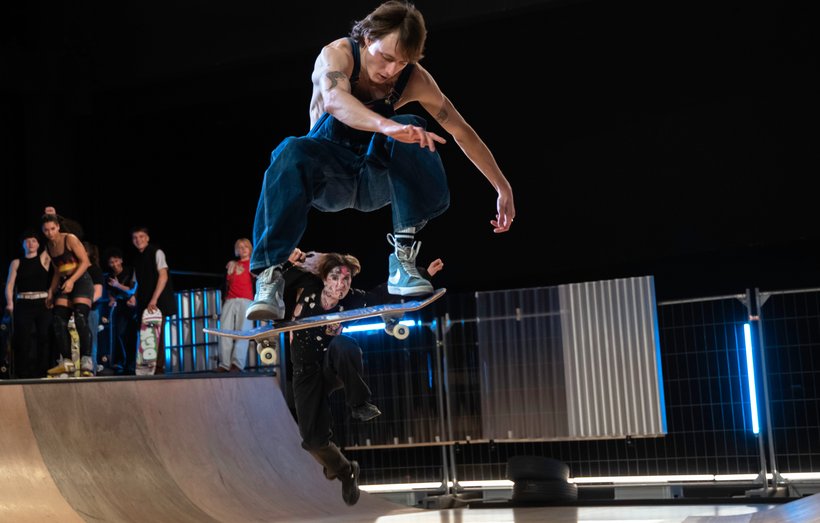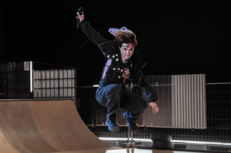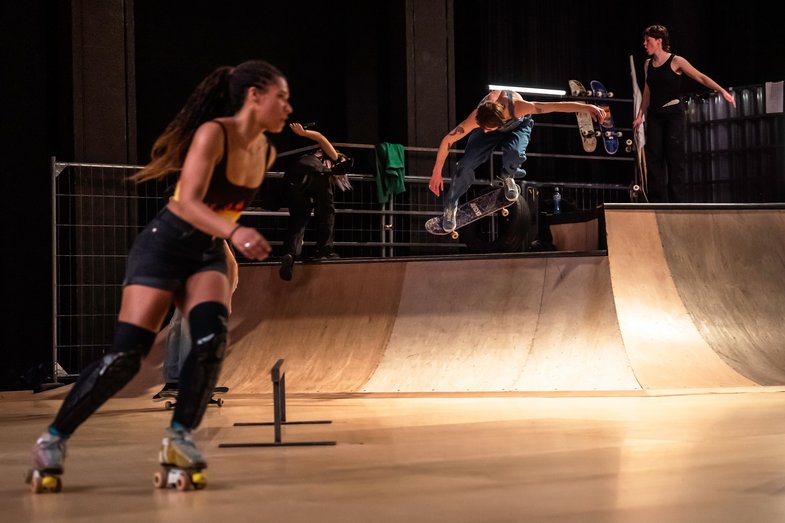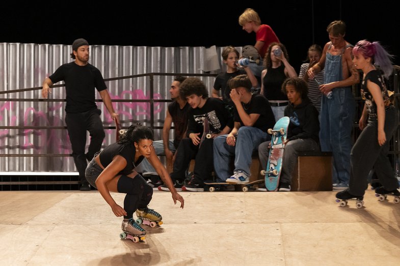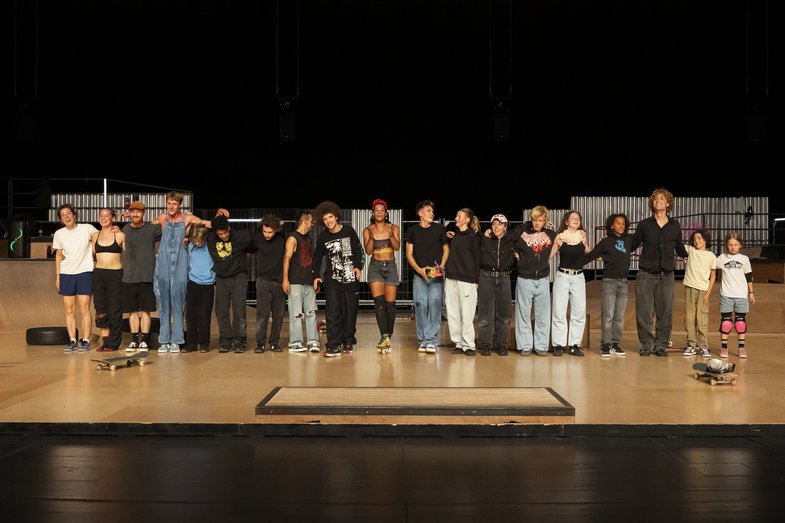 Concept & choreography: Mette Ingvartsen, Mette Ingvartsen / With: Damien Delsaux, Manuel Faust, Aline Boas, Mary Pop Wheels, Sam Gelis, Fouad Nafili, Júlia Rúbies Subirós, Thomas Bîrzan, Briek Neuckermans, Indreas Kifleyesus, Arthur Vannes, Camille Gecchele, Mathias Thiers, Bob Aertsen, Bo Huyghebaert, Nona De Neve / Local skaters: Adam Ash, Mika Gengenbach, Sunn Kecskemethy, Dorothea Maier, Marie Manzewski, Niall Moran, Viggo Storkholm / Sound design: Anne van de Star, Peter Lenaerts / Lighting design: Minna Tiikkainen / Dramaturgy: Bojana Cvejić / Costumes: Jennifer Defays / Scenography: Pierre Jambé / Antidote / Technical design set: Stéphane Thonnard / Construction set: Théâtre National Bruxelles, Joachim Pochet, Joachim Hesse, Pierre Jardon, Yves Philippaerts, Andrea Messana, Boyd Gates / Technical direction: Hans Meijer / Sound technicians: Milan Van Doren, Yrjänä Rankka, Filip Vilhelmsson / Supervisor kids: Billie Meeussen / Lighting technicians: Bennert Vancottem, Jan-Simon De Lille / Production management & administration office: Joey Ng, Oihana Azpillaga Camio / Communication: Jeroen Goffings / Company management: Ruth Collier / Online: Stage technician (Berliner Festspiele): Benjamin Brandt, Fred Langkau, Ricardo Lashley, Anne LeLievre, Jelena Marinkovic, Mirko Neugart, Holger Pasch, Juliane Schüler, Manuel Solms / Lighting technician (Berliner Festspiele): Mark Harnisch, Kathrin Kausche, Thomas Schmidt, Sachiko Zimmermann-Tajima / Sound technician (Berliner Festspiele): Giacomo Hofmann, Alexandros Itsodelis, Martin Trümper / Costume management (Tanz im August): Muriel Kunkel