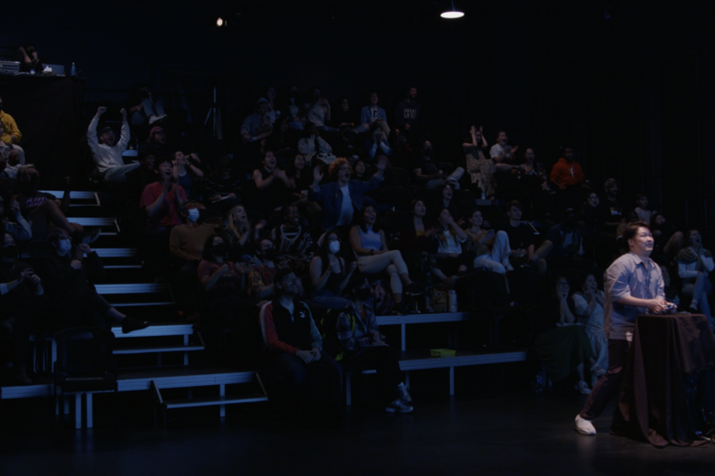 This performance uses references to drug use, suicide and police violence. Physical violence and sexual acts are depicted virtually. Strobe lighting effects are used. There is interaction with the audience. We recommend participation for viewers aged 14 and over.