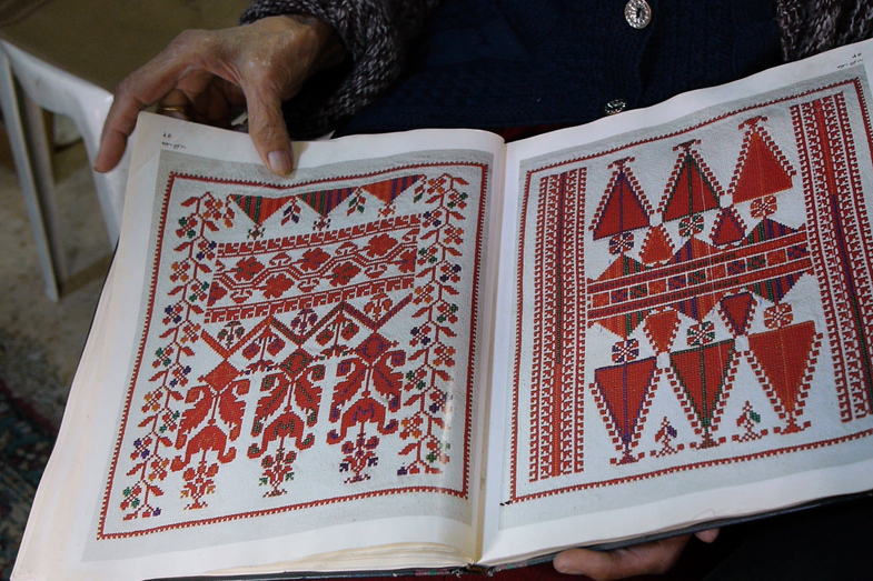 “The Embroiderers” (2016) by Maeve Brennan documents the stories of six women working with Palestinian embroidery today: Umm Ibrahim (Amman, Jordan); Wahiba Mohammad Ali Tawafsha (Sinjil, Palestine); Raja Sabri el-Zeer (Salfit, Palestine); Suhair Odeh (Dheisheh Camp, Bethlehem, Palestine); Nawal Mahmoud (Saida, Lebanon) and Maryam Malakha Abu Laban (Amman, Jordan). Through personal accounts, the film explores the significance of this intimate and deeply political material and how it continues to give form to ideas of Palestinian heritage, history, labour and resistance. The film returns throughout to Umm Ibrahim’s hands turning the pages of a book of Palestinian embroidery designs. Every set of designs denotes a different town with its own unique colours and motifs, conjuring the landscape of Palestine with each stitch.