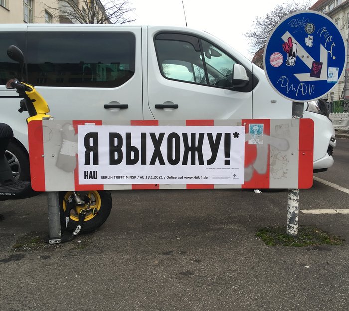 Im Rahmen des Programmschwerpunktes “‘Я выхожу!’ (‘Ich gehe raus!’) – Berlin trifft Minsk” zu den aktuellen Ereignissen in Belarus hat Fabifa ein Tape-Art-Bild für das HAU Hebbel am Ufer erstellt. Die Künstlerin aus Minsk lebt in Berlin und präsentiert ihre Tape-Art-Performances im Rahmen von Festivals und Ausstellungen europaweit. In Berlin sind ihre Arbeiten immer wieder auf Wänden in der ganzen Stadt zu sehen.