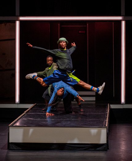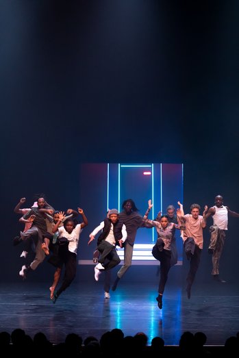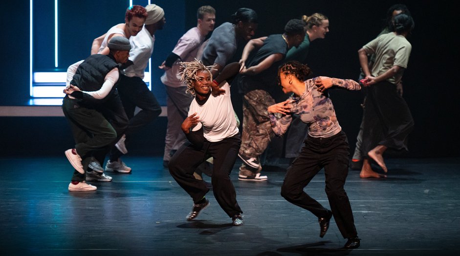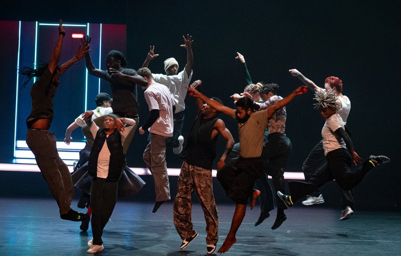 Kurze Tanzchoreos waren in den letzten Jahren ein großer Trend in den sozialen Medien. Die neue Arbeit von Amala Dianor zelebriert die überbordende Kreativität dieser dynamischen Kunstform, die sich in Subkulturen und im Internet entwickelt hat. Elf junge Tänzer*innen, die in unterschiedlichen urbanen Tanzformen ausgebildet sind, loten virtuos die choreografische Bandbreite zwischen der Demonstration individueller Geschicklichkeit und kollektiver Synchronisation aus. Begleitet von der Live-Musik des Electro-Produzenten Awir Leon bewegen sie sich durch eine Landschaft aus riesigen, gestapelten Würfeln, in denen jede Bewegung viral gehen kann. “DUB” führt eindrücklich vor Augen, wie sich Mensch und Bewegung Kategorisierungen widersetzen.