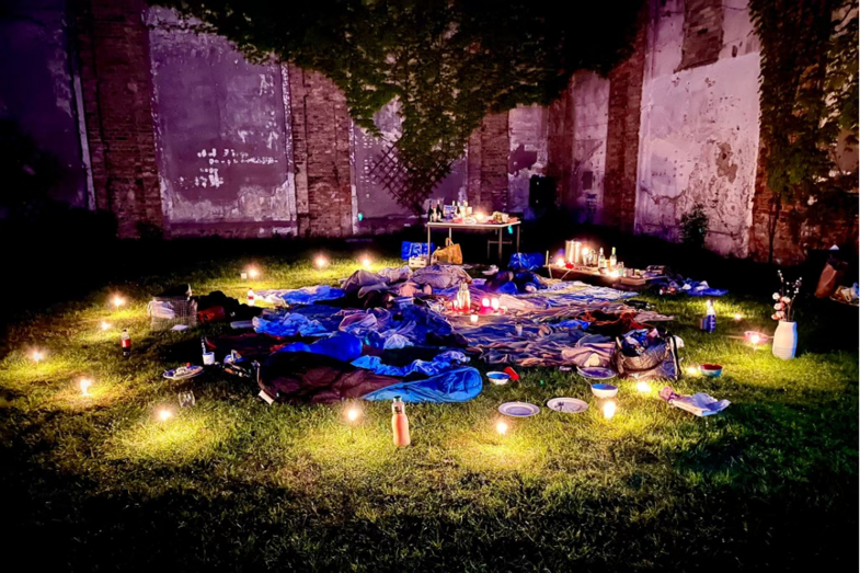 Die acht Stunden der Veranstaltung bewegen sich zwischen leise und laut und bieten vielfältige Erfahrungen, die sowohl psychedelisch als auch spirituell und intellektuell geprägt sind. Mit Snacks und im Schlafanzug ist “Tikkun” ein gemütlicher Ort, um die langen Stunden der Nacht gemeinsam zu verbringen und gemeinsam zu lernen, bis die Sonne aufgeht und wir langsam unsere Sachen zusammenpacken, um in die wache Welt zurückzukehren.