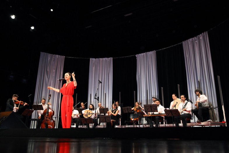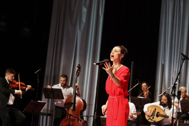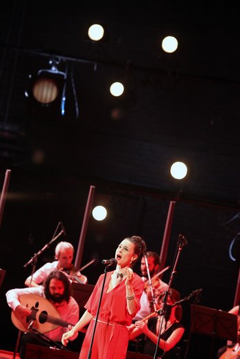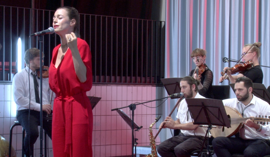 “Diva: Celebrating Oum Kalthoum” ist eine Ode an das Erbe der legendären ägyptischen Sängerin und das erste Projekt von The Wedding Orchestra for Middle Eastern Music. Das Orchester ist eine Initiative des Berliner Regisseurs Ariel Efraim Ashbel, die professionelle Musiker:innen mit unterschiedlichen kulturellen Hintergründen aus der ganzen Welt zusammenbringt. Mit dabei sind Alexey Kochetkov als musikalischer Leiter, die Sopranistin und Performerin Ruth Rosenfeld und die bildende Künstlerin Alona Rodeh.