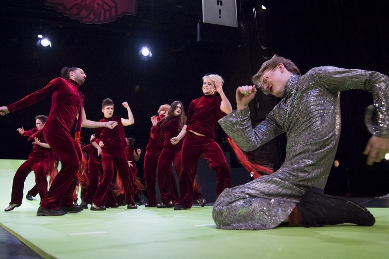 Inszenierung: Janina Audick, Martina Bosse, Brigitte Cuvelier, Christine Groß / Chor: Jona Aulepp, Claudio Campo-Garcia, Maikel Drexler, Yasmin El Yassini, Sanni Est, KAy Garnellen, Kim Ley, Naomi Odhiambo, Marina Prados, Jayrôme C. Robinet, Nathalie Seiß, Julian Süss, Meo Wulf / Chorregie: Christine Groß / Choreografie: Brigitte Cuvelier / Bühne/Kostüm: Janina Audick / Dramaturgie/Produktionsleitung: Martina Bosse / Musikalische Leitung: Sacha Benedetti, Roman Ott / Komposition Tinder Match: Sanni Est / Lichtdesign: Klaus Dust / Technische Leitung: Fabian Eichner / Künstlerische Produktionsassistenz: Jan Koslowski / Assistenz Bühne und Kostüm: Marlene Lockemann, Daniela Zorrozua / Dokumentation: Hannes Francke, Ute Schall / Bühnenbau: Lichtblick Bühnentechnik / Hospitanz: Josefin Willnauer / Kostümanfertigung: Lea Carreno, Imke Paulick / Text: Einar Schleef, Kim Ley, Maggie Nelson (Übersetzung Jan Wilm), Jayrôme C. Robinet / Aufführungsrechte: Suhrkamp Verlag Berlin, Hanser Berlin