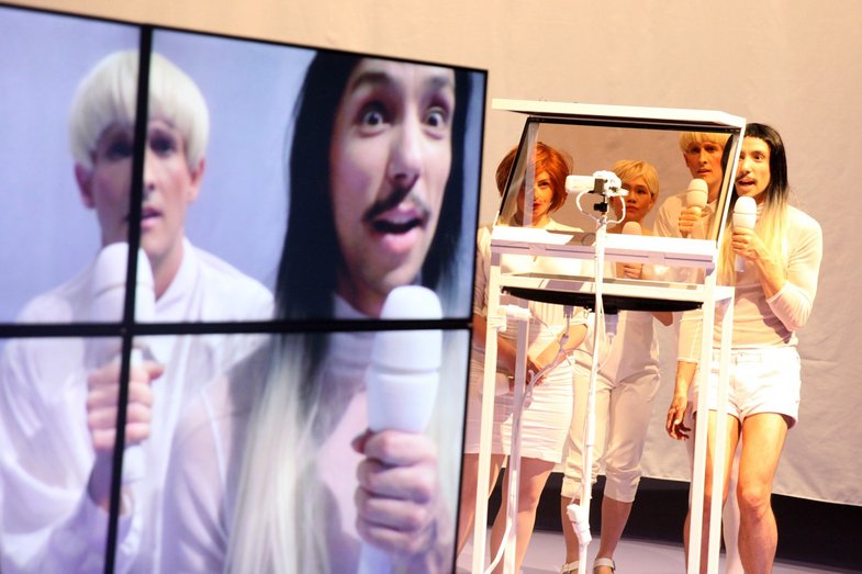 Beherzt stimmen die Performer Fabian Holle, Baly Nguyen, Damian Rebgetz und Melanie Jame Wolf die "Elegy for Television“ an: Werfen letzte Blicke zurück, trauern um die Struktur, die das Fernsehprogramm ihrem Alltag verlieh, zelebrieren die Befreiung von dessen Diktat und honorieren das Verschwinden. In einem Mosaik von Reenactments, fragen sie nach den Ritualen des Fernsehzeitalters, nach den verlorenen Momenten von Gemeinschaft, der Synchronisation von Nachbarschaften und Nationen und zappen durch individuelle und kollektive Erinnerungen. Trailer "Elegy for Television"