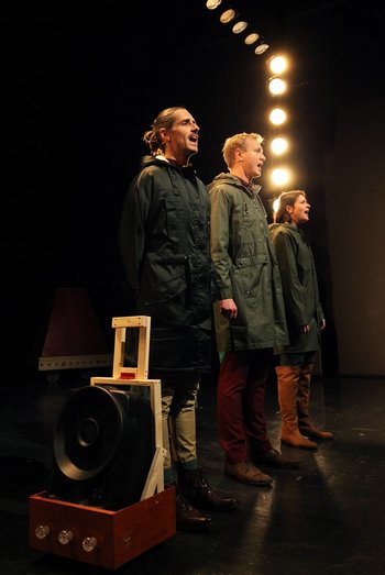 Mit: Léonard Bertholet, Tino Kühn, Hannah Müller / Konzept, Regie, Texte, Musik: FUX / (Nele Stuhler, Falk Rößler) / Mitarbeit Konzept, Texte, Musik: Stephan Dorn / Musik: Paul Peuker, Nils Weishaupt / Bühne: Annatina Huwiler / Kostüme: Katharina Sendfeld / Lichtdesign & Video: Jost von Harleßem / Sounddesign: Rupert Jaud, Samuel Schwenk / Dramaturgie: Michaela Stolte / Produktionsleitung: Jasna Witkoski / Regie- und Ausstattungsassistenz: Robert Zeigermann / Bühnenbildassistenz: Friederike Rost / Bühnenbau: Jan Hoffmann, Julie Speck / Dank an: Dana Marbach, Dr. Priska Daphi, Prof. Dr Arne Stollberg, Dr. Simon Teune sowie Dominik Hallerbach und Uwe Lehr