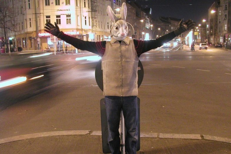 In der Performance SUPER NIGHT SHOT muss ein Performer einen Passanten zu einem Filmkuss überreden. Seit der Premiere im Berliner Prater im Winter 2003 hat sich dieser Kuss in über 100 Städten weltweit wiederholt. Das Video dokumentiert dieses ungewöhnliche Ereignis, ein Mensch mit Hasenmaske küsst einen Unbekannten. Die Orte wechseln, die Zeit vergeht, doch der Kuss wird weitergetragen, von Berlin über Budapest bis Krasnoyarsk und New York.