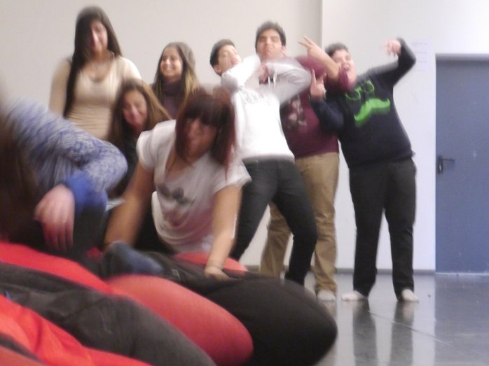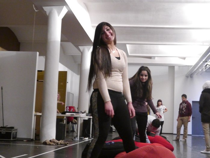 Isabelle Schad und Odile Seitz verwendeten mit Styroporkügelchen gefüllte Sitzsäcke als Material - als Übergangsobjekt und Bindeglied zwischen den Körpern und zwischen Körper und Außen. Durch einen ganzheitlichen Ansatz in der Bewegungsarbeit wurde das Bewusstsein für den eigenen Körper und den Gesamtkörper der Gruppe geschärft. Ist es dem Einzelnen als Teil eines Kollektivkörpers möglich, Subjekt in einem großen Ganzen zu bleiben, ohne dass sich die eigene Verantwortung für die Situation durch die Anwesenheit der Anderen reduziert? Die Beziehungen und Spannungen zwischen Körpern, Bewegungen und Räumen wurden in Landschaftsbildern, aus Menschen und den sie umgebenden, formbaren Sitzsäcken bestehend, ausgelotet. Im Hintergrund stellte das Projekt die Fragen: Welche Wahrnehmung des eigenen Körpers unterstützen die Sitzsäcke? Welche Beziehungen zwischen den jungen Menschen dürfen existieren dank diesem Übergangsobjekt? Welchen Freiraum und welche Kreativität lässt dieses explorative Format entstehen? Das gesammelte Recherchematerial wurde anschließend zu einer Choreografie neu geordnet.