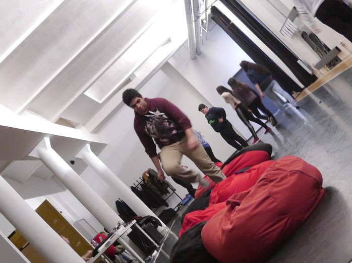 Von Mitte Februar bis Mitte März 2013 waren Isabelle Schad und Odile Seitz im Houseclub zu Gast. Gegenstand ihrer Recherche war der eigenen Körper und der ihn umgebende Raum. Sie erforschten mit den Jugendlichen, wie sich Körper und Umraum zueinander verhalten. Wie verändert mein Körper den Raum? Lässt sich eine Grenze zwischen meinem Körper und dem Umraum bestimmen? Lässt sich zwischen dem Außerhalb und dem Innerhalb des Körpers differenzieren?