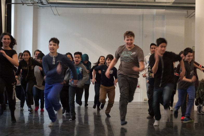 Mit: Klasse 7 A2 / Latif Assaf, Medine Atik, Jumana Chawraba, Dardan Elezi-Grabia, Leyla El-Jindawi, Sherin El-Touki, Lena Fares, Karima Fayad, Vanessa Hokic, Malak Issa, Marcel Kath, Hilal Kaya, Emre Kocatürk, Amani Koussa, Enes Kök, Chuck Kurt, Anika Mittfel / Künstlerische Leitung: Melati Suryodarmo / Künstlerische Assistenz: Lukas Müller / Projektleitung Schule: Benita Bandow / Projektleitung HAU: Ciprian Marinescu / Houseclub-Team: Katie Dunbar, Theresa Münnich, Anne Paffenholz, Khaled Sleiman