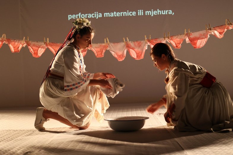Regie: Tjaša Črnigoj / Cast: Sendi Bakotić, Ana Marija Brđanović, Anja Sabol, Vanda Velagić / Konzept: Sendi Bakotić, Ana Marija Brđanović, Tjaša Črnigoj, Anja Sabol, Tijana Todorović, Vanda Velagić / Dramaturgie: Tjaša Črnigoj / Kostüme: Tijana Todorović / Bühnenbild: Ivan Botički, Tijana Todorović / Video: Mara Prpić / Lichtdesign: Marin Lukanović, Tjaša Črnigoj / Slowenische Übersetzung und Übertitel: Tina Malič / Technische Leitung: Marin Lukanović / Bühnenleitung: Marin Butorac / Dank an: Wir möchten uns bei den Großmüttern Emica, Vera, Dragica, Viktorija, Tante Eugenijia und den Müttern Miranda, Dajna, Danijela und Edita bedanken. Den Mädchen, die anonym an den Workshops teilgenommen haben und den Mädchen, die auf dem Video zu sehen sind. Maša Magzan, Jasenka Grujić und Aleksandar Štulhofer danken wir für die Hilfe bei der Recherche. Und wir danken Vita Tijan; ihr Artikel My Body, My Property (Kult magazin of the First Croatian Gymnasium in Rijeka, 2021-2022) war die Inspiration für das Projekt.
