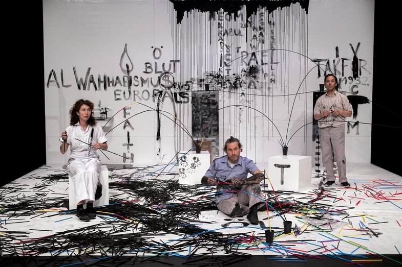 “Saudi Arabien ist ein Staat, den der US-Ölkonzern Aramco zur Wahrung seiner Interessen erfunden hat”, schreibt der britisch-pakistanische Schriftsteller Tariq Ali. Saudi Aramco, in den 70er Jahren von der Familiendynastie al-Saud verstaatlicht, ist heute eines der wertvollsten Unternehmen der Welt. “Enabling Opportunity” lautet die Logline des saudischen Konzerns. Öl ist das schwarze Gold der modernen Ökonomie und Treibstoff des Terrorismus. Nach einer dreijährigen Abwesenheit sind Hans-Werner Kroesinger und Regine Dura nun mit einer neuen Produktion zurück am HAU Hebbel am Ufer. Gemeinsam mit vier Performer:innen und einem Musiker begeben sie sich auf Spurensuche in die Geschichte der Ölgeschäfte und die Ökonomien des islamistischen Terrorismus im Nahen Osten, deren letzter Ableger der Islamische Staat ist. Wie hängen die Öleinnahmen des saudischen Staates, der streng nach der sunnitischen Ausrichtung des Islams, dem Wahhabismus, regiert wird, mit dem islamistischen Extremismus zusammen? “Schwarze Ernte” untersucht dabei die Verknüpfungen zwischen Ökonomie, Religion und Terror.