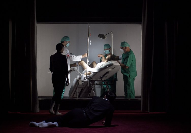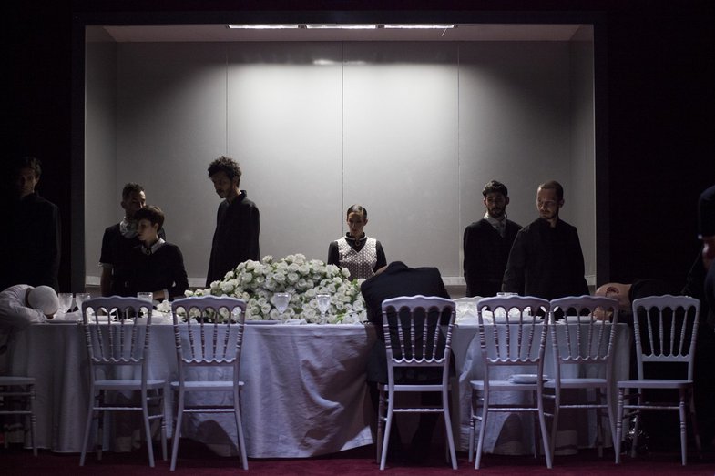 Eine Höhle als Allegorie der Hölle: Der Idee des Bösen auf der Spur sind La Veronal mit ihrem neuen Stück "Voronia". Ins Erdinnere haben sie sich auf ihren Recherchen begeben, in die tiefste Kaverne der Welt, die Krubera-Voronia-Höhle im georgischen Abchasien. Die Höhle als Dante'sche Hölle, tief unten und ewig: Wie Dunkelheit die Abwesenheit von Licht bedeute, so bedeute das Böse die Abwesenheit des Guten – eine kategoriale Unterscheidung, die allein für den Menschen von Belang sei, beruft sich die in Barcelona ansässige Künstlergruppe um Marcos Morau auf den Philosophien Augustinus. Um die Grenzen der Moral zu sichern, habe sich der Mensch Gott geschaffen, als Bewahrer des Guten, als moralisches Refugium. Doch Religion sei in den Händen von Gottes Statthaltern verkommen, so La Veronal: Im Namen Gottes zu töten, sei der Tod Gottes und des absoluten moralischen Systems. – Ein geographischer Ort als Ausgangspunkt für die künstlerische Erkundung einer Idee – dieser Ansatz hat La Veronal bekannt gemacht. Ihr surreal-philosophisches Städtestück mit Krimiplot, "Siena", gastierte im vergangenen Jahr bei Tanz im August; "Voronia" wurde nun vom Festival koproduziert. Tanz, Text und BiId verbinden sich hier in einer labyrinthischen Dramaturgie zu einem stets neu zu entschlüsselnden, nie ganz aufzulösenden Rätsel: "Voronia" gleicht einem Stationendrama, einer absteigenden Bewegung in wechselnden Bildern.