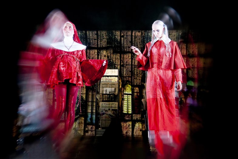 Auf Einladung des HAU Hebbel am Ufer gibt die bildende Künstlerin Leila Hekmat ihr institutionelles Theaterdebüt mit “Gloriette”, einer musikalischen Komödie, in der barocke Opulenz in Anarchie umschlägt. Zu der Originalmusik von Roman Ole und Roman Lemberg, komponiert für ein Barock inspiriertes Ensemble mit Live-Elektronik und einer Choreografie von Shade Theret, tritt ein transdisziplinares Ensemble aus Tänzer*innen und Performer*innen auf, die sich als Verkäufer*innen und Kund*innen im sinkenden Kaufhaus zunehmend isolieren – unter den Protagonist*innen Susanne Sachsse, Edith Saldanha und Mickey Mahar.