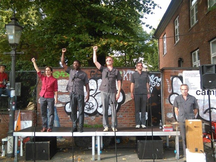Während in Theater und Bildender Kunst seit Jahren ein regelrechter Politikboom zu beobachten ist, scheint sich die Popkultur in der Rolle eingerichtet zu haben, den herrschenden Verhältnissen ihre Begleitmelodie vorzuspielen. Zu den Ausnahmen im deutschsprachigen Raum zählt das Schwabinggrad Ballett aus Hamburg, ein seit 14 Jahren existierender Zusammenschluss von Aktivisten unterschiedlicher Prägung, der mit Happenings und musikalischen Performances unter anderem die “Recht auf Stadt”-Bewegung und die Lampedusa-Flüchtlinge unterstützt. Vier Mitglieder stellen die Arbeit der Gruppe zur Diskussion.