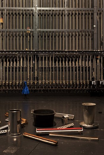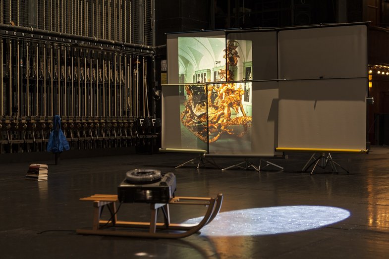 Tanz und Performance sind seit etlichen Jahren in Museen und Galerien präsent. Dieses Verhältnis umkehrend, zeigt Tanz im August zeitgenössische Kunst im Theater statt im White Cube und lädt die Sammlung Haubrok ein, einige Exponate im HAU1 zu präsentieren. In der nur eintägigen Ausstellung werden unter anderem Werke von Carol Bove, Olafur Eliasson, Elmgreen und Dragset, Philippe Parreno, Willem de Rooij, Andreas Slominski und Christopher Williams gezeigt. Der Titel der Ausstellung ist einer Arbeit von Andreas Slominski entlehnt, „Die Erde, zur gleichen Zeit halb so klein und doppelt so groß“: Das Verständnis für die konzeptuellen Arbeiten setze Vorstellungskraft voraus, so die Sammler, die Werke erzählen nur dann Geschichten, wenn man sich auf sie einlässt. Seit 1988 sammeln Axel und Barbara Haubrok Kunst, anfangs Malerei, seit der Jahrtausendwende schwerpunktmäßig Konzeptkunst. In Berlin sind seit 2005 Ausstellungen zu sehen, zuerst in der Privatwohnung der Haubroks, ab 2007 in Showroom am Strausberger Platz. Seit 2013 zeigen sie ihre Künstler- und Ausstellungsprojekte in der FAHRBEREITSCHAFT, den Gebäuden der ehemaligen Transportzentrale des DDR-Ministerrats in Berlin-Lichtenberg.