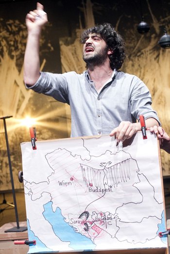 Die Uraufführung im HAU Hebbel am Ufer konfrontieren die in Sarajevo, Belgrad und Istanbul gewonnenen Recherchematerialien – historische Zeitungsartikel, Militärberichte, Reiseführer, persönliche Erinnerungen – miteinander. Die Performer aus den vorigen Stationen treten als konkurrierende Handlungsreisende in Sachen historische Sinngebung auf: Wird das Attentat auf den österreichisch-ungarischen Thronfolger Franz Ferdinand als terroristischer Akt oder als revolutionäre Tat gedeutet und der Attentäter Gavrilo Princip als Extremist oder als Held? Was war wirklich das Ziel der Allianz des Deutschen und des Osmanischen Reiches? Regisseure und Performer entwickeln aus ihren Erfahrungen bei den Werkstatt-Aufführungen weitere Fragen: Wie verändert der Kontext die Bedeutung eines Dokuments? Was sagen die jeweiligen Geschichtsversionen über die
