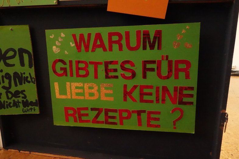 Ein Teil der Schüler*innen entwickelt mit dem Bildhauer Todosch Schlopsnies eine begehbare Rauminstallation. Streng nach der Wahrheit: Es scheint, dass es sich bei ArbeitLiebeGeld um eine Art 'Spiel' handelt, welches in einer hölzernen Konstruktion stattfindet, die entfernt an den 'Budenzauber' eines Vergnügungsparks erinnert. Dabei ist alles beschriftet mit Slogans, Sprüchen und Begriffen von handgemalt bis digital gedruckt: Das typographische Archiv tendiert vom Schilderwald zum Labyrinth.