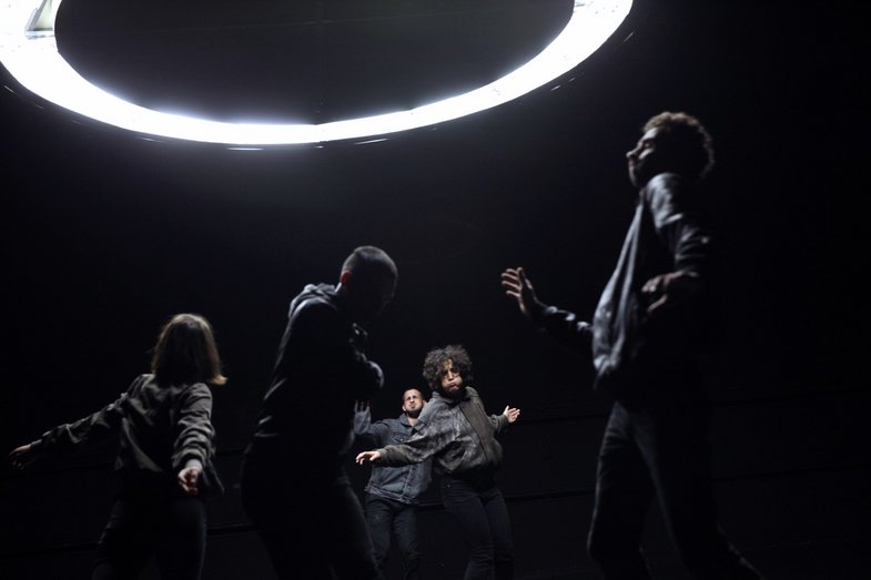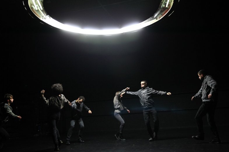 Sechs Performer:innen betreten einen dunklen Raum. Sie hören einen Beat, der den Herzschlag eines rastlosen Tieres simuliert. Sie sehen alltäglich aus, und doch liegt in ihrem Aussehen etwas Fremdartiges. Sie stellen keine Forderungen und sind verloren im Zustand des Vergessens – und doch wollen sie wieder fühlen. Plötzlich zieht jemand die Hand aus der Tasche und sucht begierig nach einer Berührung. “Ah! Oh! – A Contemporary Ritual” ist das zweite Stück aus Kat Válasturs Serie “The Marginal Sculptures of Newtopia”. Wie bereits in der ersten Arbeit “GLAND” betreten die Tänzer:innen eine utopische Landschaft. Diesmal markiert ein Kreis den Raum, in dem die Performer:innen agieren. Durch die Bewegungen der Tänzer:innen entsteht eine Topographie. Sie spiegelt die Veränderungen des Raumes, die durch das Eindringen der Körper entstehen. Die Landschaft, die daraus entspringt, ist ‘Newtopia’. Sie entsteht aus den Trümmern einer vergangenen Welt. Inspiriert von archaischen Ritualen geht “Ah! Oh! – A Contemporary Ritual” den Ursprüngen des Reigens nach, dem Tanzen im Kreis. In einer post-apokalyptischen Atmosphäre suchen die Performer:innen nach der Erinnerung an das gemeinsame Tanzen. Die Choreografie legt Fragmente eines Gestus frei, durch den Gemeinschaften unter Aufhebung von Zeit geformt werden.