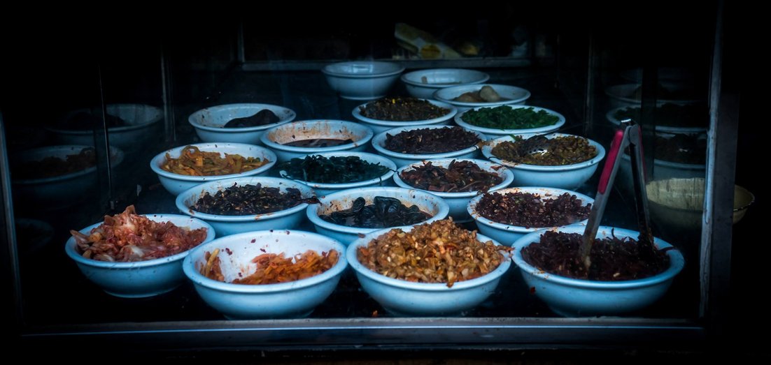 Unser Koch hat die Rezepte vertauscht und statt Hähnchenflügel hat er Hühnerfuße benutzt, statt Schweinshaxen, Schweineohren und statt Thunfischsalat hat er Quallensalat vorbereitet. Aus diesem Durcheinander ist eine zauberhafte Kombination aus leckeren, gallertartigen, knusprigen Zutaten entstanden mit viel Sojasoße dazu. Wir hoffen, dass es euch trotzdem gut schmeckt und dass ihr sein Experiment nicht nur "mama-huhu" (so lala) findet, sondern richtig "haochi" (wohlschmeckend).